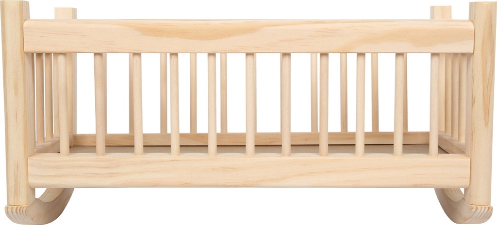 Vuggen udmærker sig ved sikker udførelse med afrundede kanter og kvalitetsforarbejdning for lang holdbarhed. Når børn leger forældre, tilegner de sig let daglige ritualer og omsorg, samtidig med at de træner finmotorik og rytmesans.