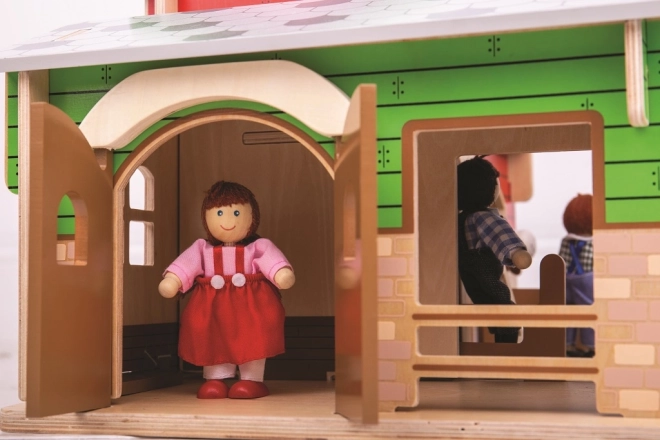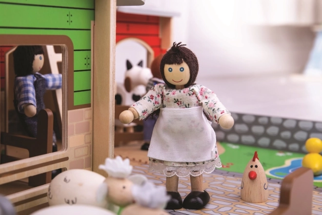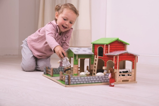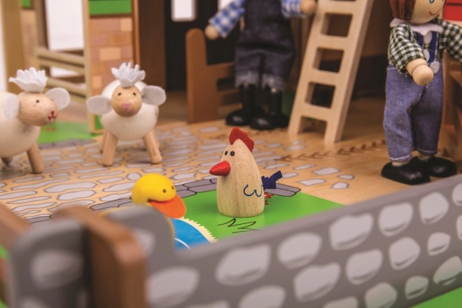 Sættet er fremstillet af kvalitetstræ fra ansvarlige kilder og er kompatibelt med ekstra tilbehør, som kan tilkøbes. Realistiske elementer som lille andedam, garage til traktor og indhegninger med bevægelige porte fremmer fantasifuld leg, historiefortælling og udvikling af finmotorikken.