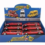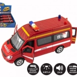 Brandbil i metal/plast 15 cm med lys og lyd, pull-back