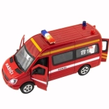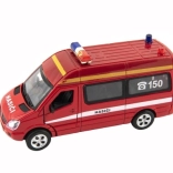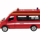 Realistisk brandbil af metal med plastdetaljer til små redningsfolk. Tilbyder lys- og lydeffekter, pull-back for hurtig kørsel, åbne for- og bagdøre og en kompakt størrelse på 15 cm. Batterier medfølger, så legen kan begynde med det samme.