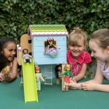 Træd ind i en magisk verden med Lottie Skovfe. Hendes lagdelte kjole i grønne og lilla nuancer, fløjls-top og fine tutu-nederdel, der minder om blomsterblade, forvandler enhver leg til en historie fuld af fantasi. Rødt hår, grønne øjne og gyldne ballerinaer fuldender det eventyrlige udtryk.