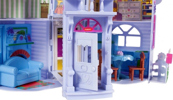 Dette farverige sammenklappelige dukkehus er det perfekte sted for fantasifuld leg for dit barn. Med flere rum og mange tilbehør byder det på timevis af underholdning og fremmer kreativitet og historiefortælling, samtidig med at det er let at tage med takket være det praktiske håndtag.