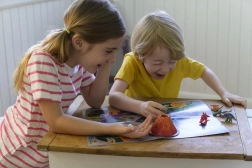 Mal 6 dinosaurer og en vulkan, og du kan spille et eventyrspil og lave et vulkanudbrud.