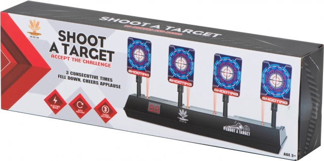 Den elektroniske skydeskive er et fremragende valg til at træne præcision og til konkurrencer derhjemme. Fire individuelle mål muliggør forskellige spiltilstande – fra hastighedsdueller til sparsom skydning med færrest mulige dartpile. Efter hvert træf klapper målet ned; når alle fire er ramt, får du 1 point, og skiverne vender automatisk tilbage til udgangspositionen.
