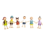 Med disse træfigurer fra Small Foot kan du nemt bringe liv til dit dukkehus. Figurerne er lavet af kvalitets træ og har bøjelige dele, hvilket muliggør deres placering i forskellige positioner. Sættet indeholder mor, far, bedstemor, bedstefar, bror og søster, alle perfekt tilpasset til børns hænder.