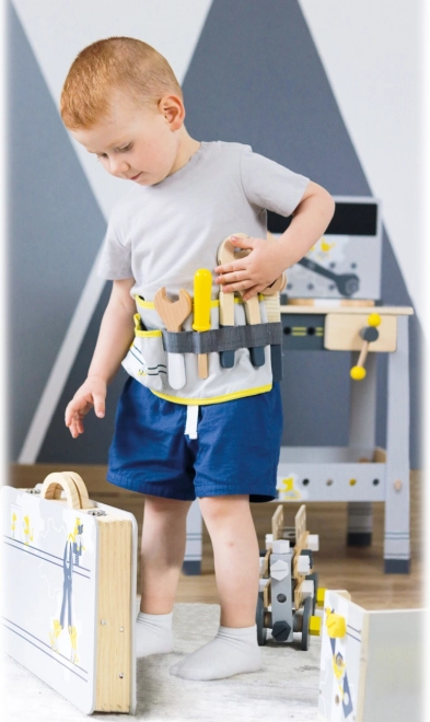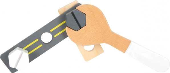Værktøjet i dette sæt er lavet af holdbart træ og plastik, som sikrer lang levetid og sikkerhed under legen.