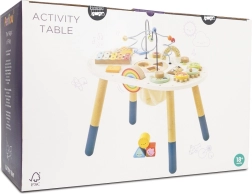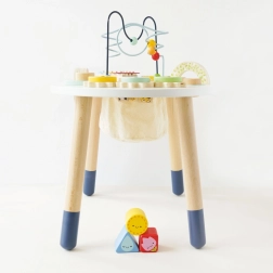 Dette robuste aktivitetsbord kombinerer flere læringslege i ét elegant møbel til småbørn fra 18 måneder. Børn træner finmotorik, hånd-øje-koordination, genkendelse af former og farver samt lydopfattelse takket være den indbyggede xylofon og andre elementer.