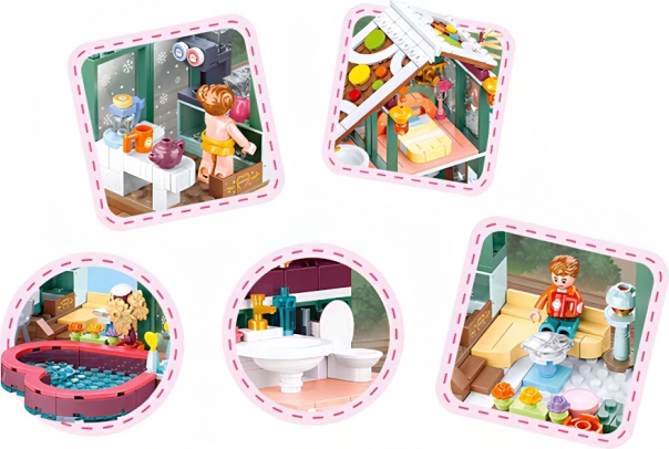 Byg en hyggelig vinterhytte og nyd endeløse vinterfortællinger. Det toetagers hus med soveværelse, opholdsområde og udendørselementer som rutsjebane og jacuzzi stimulerer børns fantasi og fælles leg. Sættet indeholder 4 detaljerede minifigurer med roterende og svingbare dele for endnu mere realistiske scener.