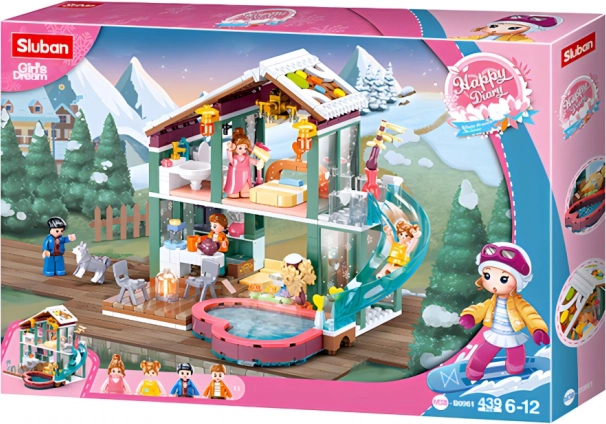 Oplev magien ved vinterleg med byggesættet SLUBAN Happy Diary – vinterhytte. En farverig, toetagers hytte, 439 klodser og 4 minifigurer giver timevis af kreativ leg. Sættet er lavet af kvalitets- og holdbar ABS-plast, har mellemsvær sværhedsgrad og er kompatibelt med LEGO, Cobi og Mega Bloks.