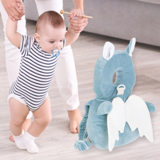 Dette bløde sikkerhedsrygsæk beskytter barnets hoved og ryg ved de første skridt og fald.