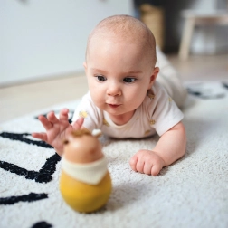 Interaktivt legetøj med klokke indeni, som stimulerer den auditive sans ved hver bevægelse. Den selvopretstående mekanisme udvikler de motoriske færdigheder.