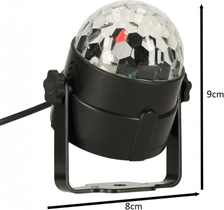Disco kuglen bruger 3x1W LED til at skabe en bred vifte af farveeffekter.
