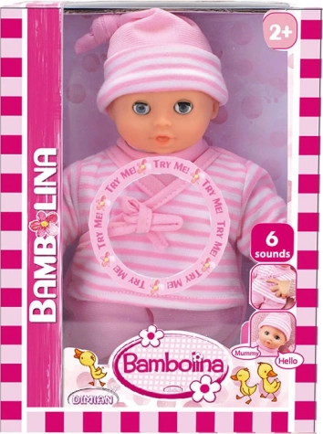 Dukken Bambolina er udstyret med 6 lyde, hvilket gør den interaktiv og sjov. Børn kan nyde forskellige situationer og scenarier, hvor dukken afgiver lyde, der bringer den til live. Pakken indeholder et assorteret udvalg af to stilarter, så du kan vælge mellem forskellige varianter. Bambolina er en perfekt ledsager til hverdagsleg og udvikling af kreativitet.