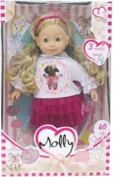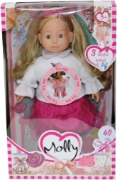 Den søde dukke Molly fra Bambolina vil glæde alle børn fra 3 år. Hun har et realistisk hoved, hænder og fødder af vinyl, blinkende øjne og langt, redbart hår. Hun kan afspille 3 glade sange, som gør legen sjovere og støtter kreativiteten. Til drift kræves 3× LR44-batterier (medfølger ikke).