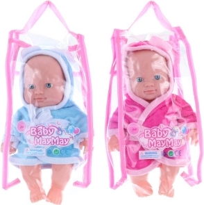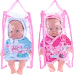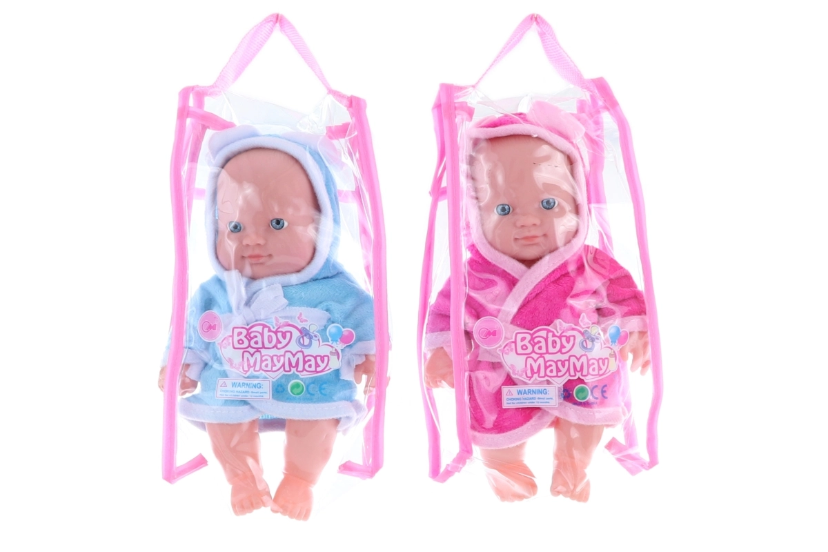 Denne søde dukke er klædt i en behagelig badekåbe og klar til daglig leg. Med en størrelse på ca. 20 × 12 cm kan børn nemt holde om den og lege både derhjemme og på farten. Den er pakket i et praktisk plastiketui, som beskytter legetøjet og gør det nemt at transportere.