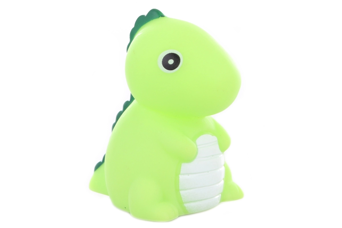 Lysende dinosaur til badet. Indeholder ikke-udskiftelige batterier. Mål ca. 6 x 4,5 x 5 cm. Pakket i en plastikpose. Alder 3+