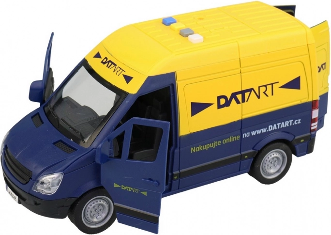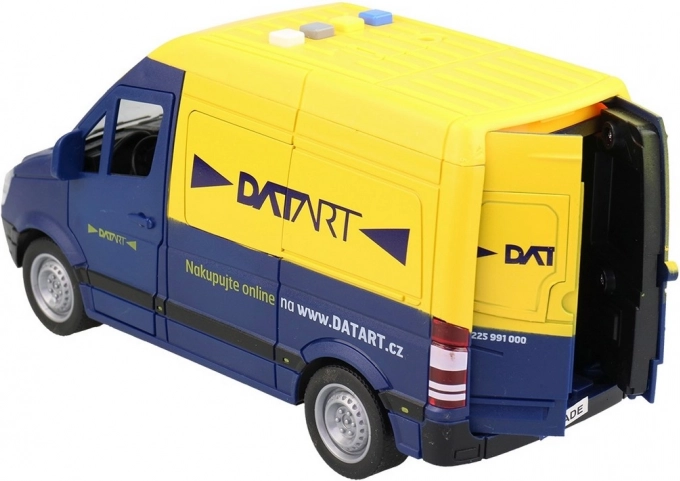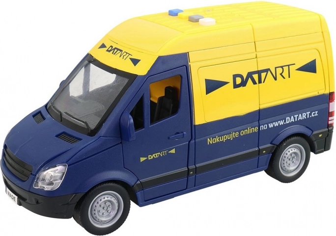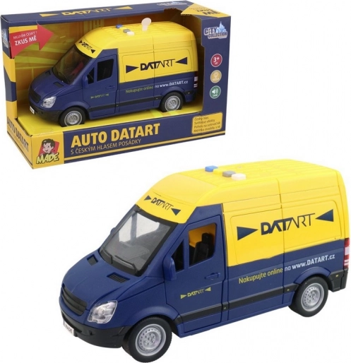 Den sjove DATART-varevogn fra MaDe vil glæde små bilfans med sit realistiske udseende, lys- og lydeffekter og chaufførens tjekkiske stemme. På taget finder du 4 knapper med replikker og motorlyd, for- og bagdøre kan åbnes, og småting kan opbevares i lastrummet. En friktionsmotor sørger for hurtig kørsel uden kompliceret betjening.