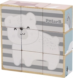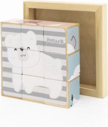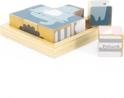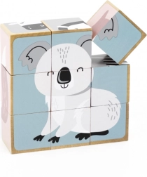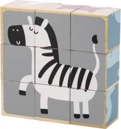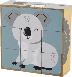 Oplev et tidløst trælegetøj, der både underholder og lærer. Af 9 klodser kan du skabe i alt 6 forskellige dyremotiver – for eksempel en bjørn, ræv, koala, zebra eller pindsvin. Hver side af klodsen hører til et andet billede, så børnene træner opmærksomhed, tålmodighed og rumlig forestillingsevne.