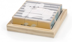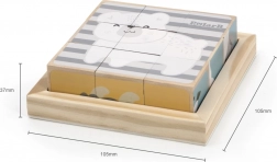 Med disse kvalitets træklodser kan du samle op til 6 søde dyremotiver. Ni solide massivtræsklodser er ideelle til børn fra 2 år og udvikler finmotorik, logisk tænkning og visuel perception. Sikker udførelse, behagelige pastelfarver og robust konstruktion til daglig leg.