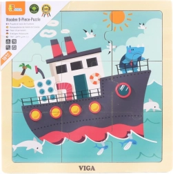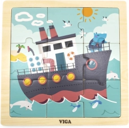 VIGA træpuslespil med skibsmotiv tilbyder 9 let gribelige brikker på en solid træplade – ideelt til de mindste. Takket være sikre, ikke‑giftige farver, glatte kanter og holdbar trækonstruktion er det et godt valg til både hjemmet og børnehaven. Børn får glæden ved at opdage og træner finmotorik, logisk tænkning og kognitive færdigheder.