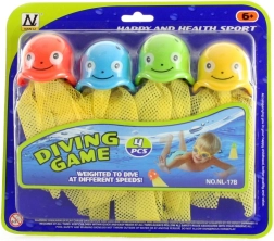 Sættet med dykkeblæksprutter er et ideelt redskab til børn, der lærer at dykke og styrker trygheden i vand. Takket være de forskellige tal på hver blæksprutte kan man nemt lave pointlege, konkurrencer og simple øvelser i koordination og vejrhold. De klare farver giver god synlighed under vandet.
