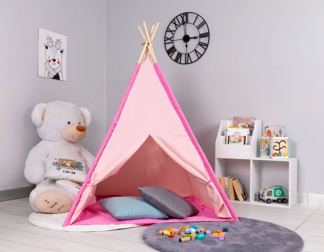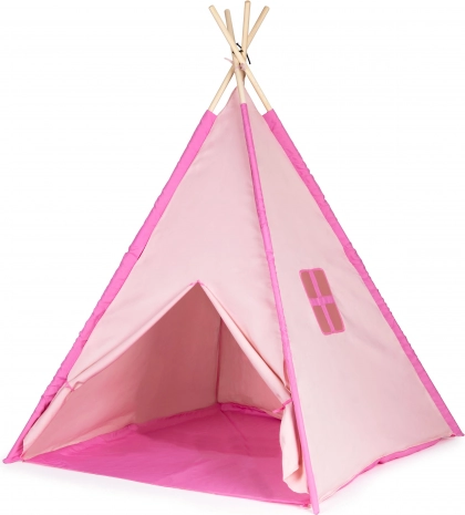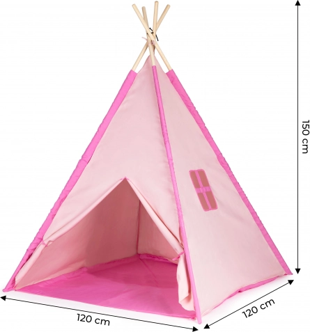 Tipitelt i størrelsen ca. 120 x 120 x 150 cm. Teltet kan bruges derhjemme på børneværelset samt om sommeren udendørs i haven. Børn vil have masser af sjov med at lege og gemme sig. Emballagemål ca. 10 x 10 x 90 cm. Alder 3+ Farve: lyserød/blå