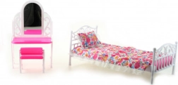 Oplev det charmerende Glorie-sæt, som bringer en dukkeseng med blødt sengetæppe og pude, et toiletbord med spejlfilm samt en praktisk stol. Passer perfekt til de fleste almindelige dukker og supplerer dukkernes værelse med et hyggeligt sted til både hvile og pynt.