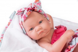 Opdag babydukken Nica fra ANTONIO JUAN – en smukt udført realistisk dukke, der imponerer med fine ansigtstræk, babyfolder og en naturlig hudtone. Den fulde vinylkonstruktion i blød vinyl er behagelig at røre ved, let at vedligeholde og gør det muligt at bade den sikkert (vær opmærksom på ikke at gøre øjenvipperne våde).