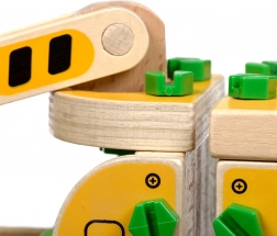 Konstruktionssættet støtter udviklingen af finmotorik gennem samling af dele ved hjælp af skruer og skruetrækker.