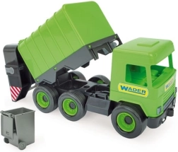 Skraldebilen WADER Middle Truck glæder børn med realistisk udførelse og nem betjening. Den funktionelle løftearm og den bageste tippemekanisme efterligner troværdigt den rigtige indsamling af affald, hvilket stimulerer fantasien og udviklingen af finmotorikken.