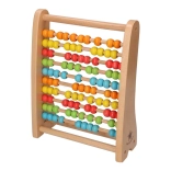 Det er bygget på en robust træramme, som sikrer holdbarhed og stabilitet, hvilket gør det ideelt til hyppig brug derhjemme og i børnehaven. De farvede perler gør det lettere at forstå talsammenhænge og grundlæggende matematiske operationer.