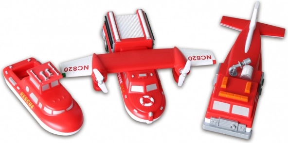 Byg RESCUE-skib, amfibiefly og brandbil – eller kombiner dem frit og skab dine egne originaler.