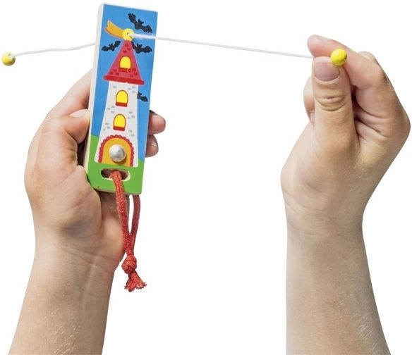 Oplev et enkelt, men fængende trælegetøj, hvor børn træner finmotorik, hånd–øje-koordination og har masser af sjov med effekten af den “forsvindende snor”. De kompakte mål er ideelle til rejser og børns rygsække. Velegnet til børn fra 3 år og med CE-overensstemmelseserklæring.