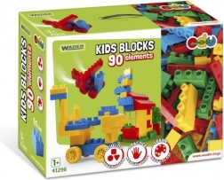Med Wader Kids Blocks bliver enhver leg til kreativ underholdning. De mange former og levende farver stimulerer børns fantasi – fra simple huse til sjove køretøjer eller fly. De større plastikdele med glat overflade ligger godt i børnenes hænder, og konstruktioner kan uden besvær samles og skilles ad.