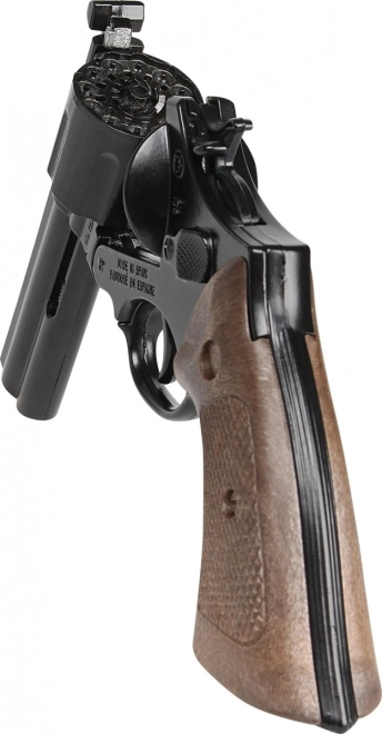 Kovinsk revolver GONHER er et tidløst legetøj inspireret af klassiske politivåben. Takket være den solide metalkonstruktion og den naturtro tromle virker den realistisk og ligger godt i en barnes hånd. Den er beregnet til 12-skuds båndkapsler, som giver legen effektfuld lyddialog.