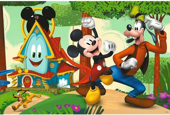 Puzzle Super Maxi 24 Sjovt hus og venner giver børn en kombination af kreativitet, logik og glæden ved eget resultat. Forsiden byder på en farverig illustration med MICKEY og hans venner, mens bagsiden overrasker med en malebog og et smart spil med elementer af farvelægning – dobbelt så meget sjov i ét produkt.