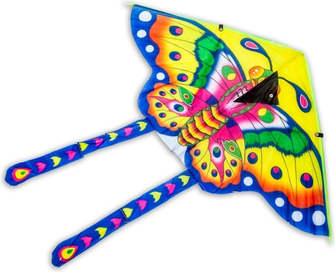 Nyd sjov i den friske luft med denne drage i sommerfugleform med en bredde på 90 cm. Takket være den lette konstruktion og det holdbare nylonmateriale stiger den let selv i let vind, og tilbyder stabil flyvning og nem styring. Der medfølger stærk nylonsnor med håndtag for komfortabel kontrol.