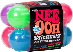 NeeDoh Stickums kombinerer afslapning og sjov i en praktisk pakke. Boldene har en behageligt blød, klæbrig overflade, så du ikke kun kan klemme dem, men også sætte dem fast og kaste dem på glatte overflader – vægge, vinduer eller lofter – og se dem langsomt slippe og falde ned.