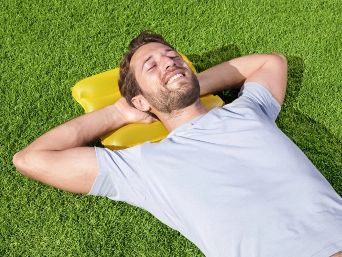 Læn hovedet mod en blød pude, når du slapper af på græsset, på stranden eller ved vandet. Let og nem at bære, ideel til afslapning i naturen.