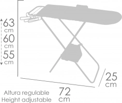 Im Lieferumfang sind praktische Accessoires für ein komplettes Spiel enthalten – ein Kunststoffbügeleisen, 3 Kleiderbügel für Kleidchen und ein Stoffkorb, der an der Konstruktion befestigt ist. Das Brett ist klappbar, lässt sich leicht transportieren und verstauen und hält dank hochwertiger Materialien (Metall, Kunststoff, Textil) dem täglichen Gebrauch stand.