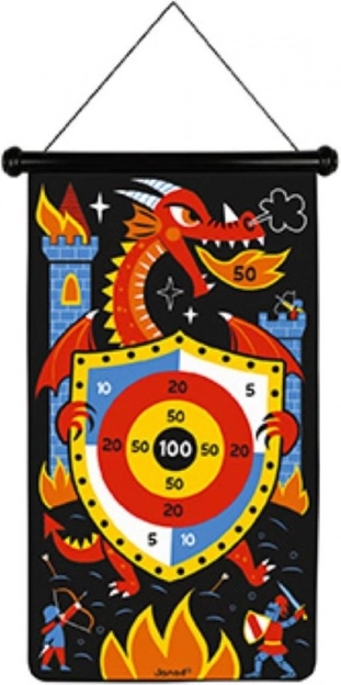 Verbessern Sie Ihr Dartwerfen und sammeln Sie so viele Punkte wie möglich mit einem präzisen Ziel! Die beidseitige magnetische Dartscheibe kann an der Wand, an einer Klinke oder an einem Baum aufgehängt werden. 6 magnetische, spitzenlose Pfeile verhindern Verletzungen und ermöglichen das Spielen bereits im frühen Alter. Die Zielbereiche sind auf einer Seite kreisförmig angeordnet und auf der anderen Seite über die gesamte Fläche verteilt. Dieses Geschicklichkeits- und Feinmotorikspiel ist mehr als nur Unterhaltung für Kinder und Erwachsene. Es ist ideal, um die Geschicklichkeit und Konzentration Ihres Kindes zu fördern. Für Kinder von 4 bis 8 Jahren. Produktmaße: 44 × 4 × 65 cm.