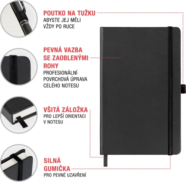Entdecken Sie ein elegantes Notizbuch, das schönes Design mit durchdachten Details für Ihre Gedanken, Ideen und Aufgaben verbindet. Der feste Einband schützt den Inhalt, während das elastische Gummiband alles sicher verschlossen hält. Das Innenfach nimmt Visitenkarten oder Notizzettel auf, und die praktische Stiftschlaufe sorgt dafür, dass der Stift immer griffbereit ist.