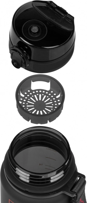 Der verriegelbare Deckel mit Sicherung verhindert ein unbeabsichtigtes Öffnen im Rucksack, und der Flip-Top-Mechanismus ermöglicht schnelles Trinken mit nur einer Hand. Das herausnehmbare Sieb eignet sich für Fruchtlimonaden oder losen Tee – das Material ist auch für heiße Getränke geeignet. Ein Trageband sorgt für komfortables Mitnehmen.