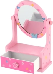 Dieses Holzkästchen in Pastellfarben mit einem verstellbaren Spiegel ist die perfekte Wahl für kleine Damen, die ihren Schmuck und ihre Wertsachen sorgfältig aufbewahren möchten.