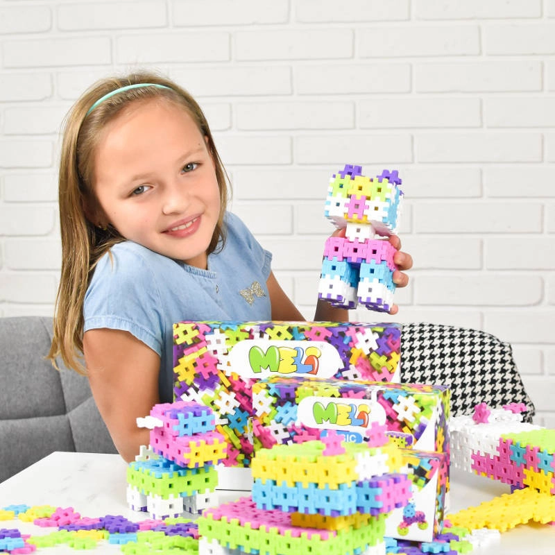 Das Set MELI Basic Pink bietet farbenfrohe, angenehm anzufassende und sichere Teile ohne BPA, Phthalate und PVC. Alle Elemente haben eine einheitliche Form, wodurch Kinder sie leicht auswählen und verbinden können; fertige Modelle lassen sich sicher transportieren. Bauen Sie 3D-Objekte und flache Mosaike wie Puzzles.