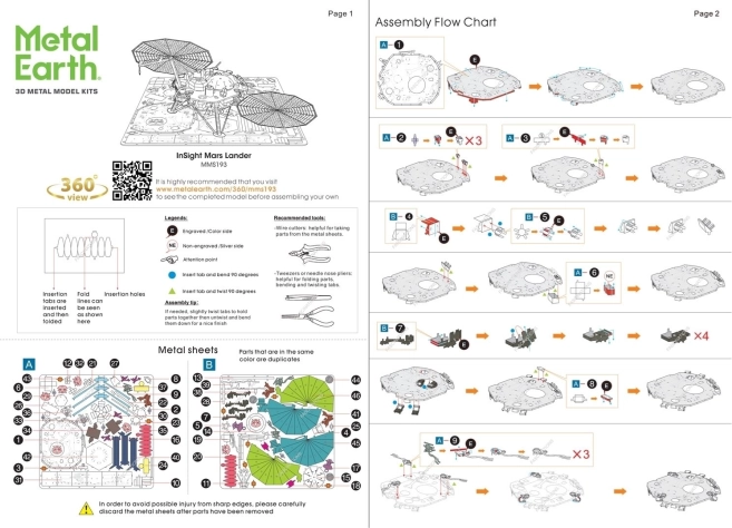 Das METAL EARTH 3D-Puzzle des InSight Mars Landers stellt eine faszinierende Bauherausforderung dar, die detailliertes Lasergravieren mit einem authentischen Aussehen verbindet. Quadratische Stahlplättchen verwandeln sich in eine stilvolle Dekoration, geeignet nicht nur für Zuhause, sondern auch für Büro oder Schule.