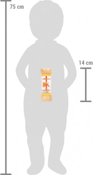 Dank der kompakten Abmessungen liegt das Spielzeug hervorragend in der Hand, passt leicht in Kinderwagen oder Tasche und ist der ideale Begleiter für unterwegs. Die hochwertige Kombination aus Holz und Kunststoff sorgt für Robustheit und Langlebigkeit. Geeignet für Babys ab 6 Monaten als Rassel und erstes Rhythmusinstrument.