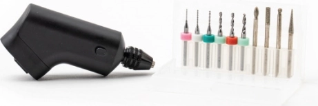 Vielseitiger Bohraufsatz für den 3D-Stift MultiPro. Bohren, Gravieren, Schleifen und Schneiden, bis zu 20.000 U/min, Bits 0,3–3,2 mm. Einfache Handhabung und schneller Austausch.