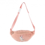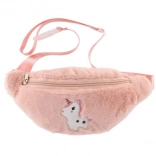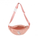 Ein Einhorn auf der Vorderseite verleiht der plüschigen Gürteltasche ein verspieltes und kindliches Aussehen.