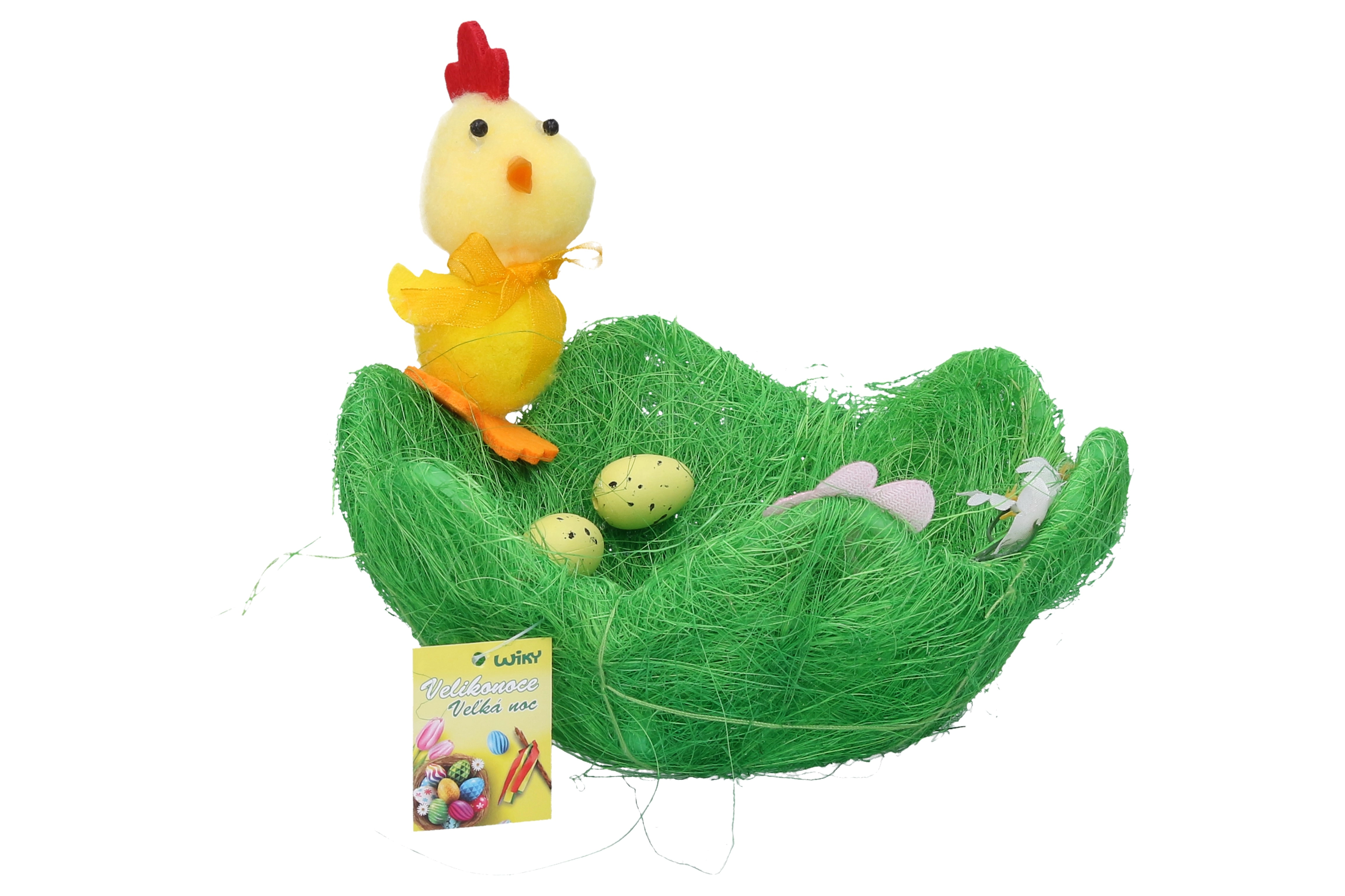 Stilvolles dekoratives Nest in natürlichem Grünton mit den Maßen 19 × 19 × 8 cm – ideal für Frühlings- und Osterarrangements, Hochzeitsdekorationen sowie ganzjährige Gestaltung. Verleiht dem Interieur einen natürlichen Look, bietet universelle Einsatzmöglichkeiten und passt dank der kompakten Maße auf den Tisch, ins Regal oder in die Vitrine.